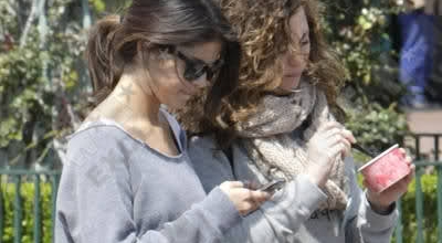 Selena esteve ontem (10) na Disneyland com seu padrasto Bryan, sua mãe Mandy e a Ashley para um passeio.