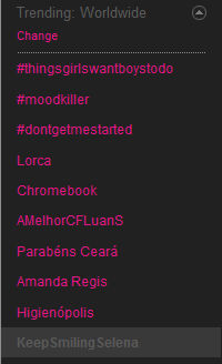A tag KeepSmilingSelena (Tradução: Permaneça sorrindo Selena) entrou hoje (12) de manhã e permaneceu nos TT’s por pouco tempo. Veja o print: