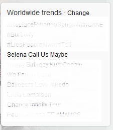 O vídeo remake da música Call Me Maybe com a participação de Selena, e outros, que Carlos Pena lançou ontem, está realmente fazendo sucesso! A tag “Selena Call Us Maybe” está no 4º lugar dos assuntos mais falados no Twitter!