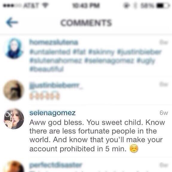 Selena não gostou nada da atitude da garota, e logo comentou o seguinte na foto dela: