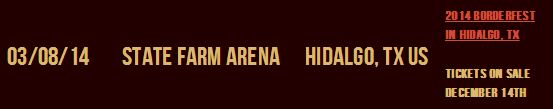 A agenda de Selena Gomez para 2014 segue ficando cada vez mais lotada, uma nova data de show apareceu no site oficial da cantora. Desta vez, anunciando que ela estará no 2014 BorderFest de Hidalgo, Texas, no dia 08 de Março. Confira: