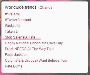 Segunda tag do dia, “Stop SelenaG Hate”, entra para os assuntos mais falados do dia! Fãs que estão cansados do ódio que Selena recebe por motivos banais!